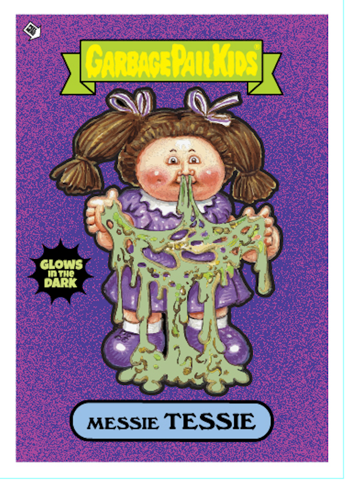 Garbage Pail Kids - Limited Edition Pin set - with fan favorites - POTTY SCOTTY, JASON BASIN, LEAKY LINDSAY & MESSIE TESSIE. These exclusive Glow in the Dark Enamel Pins come with their very own Exclusive Promo Trading Card.