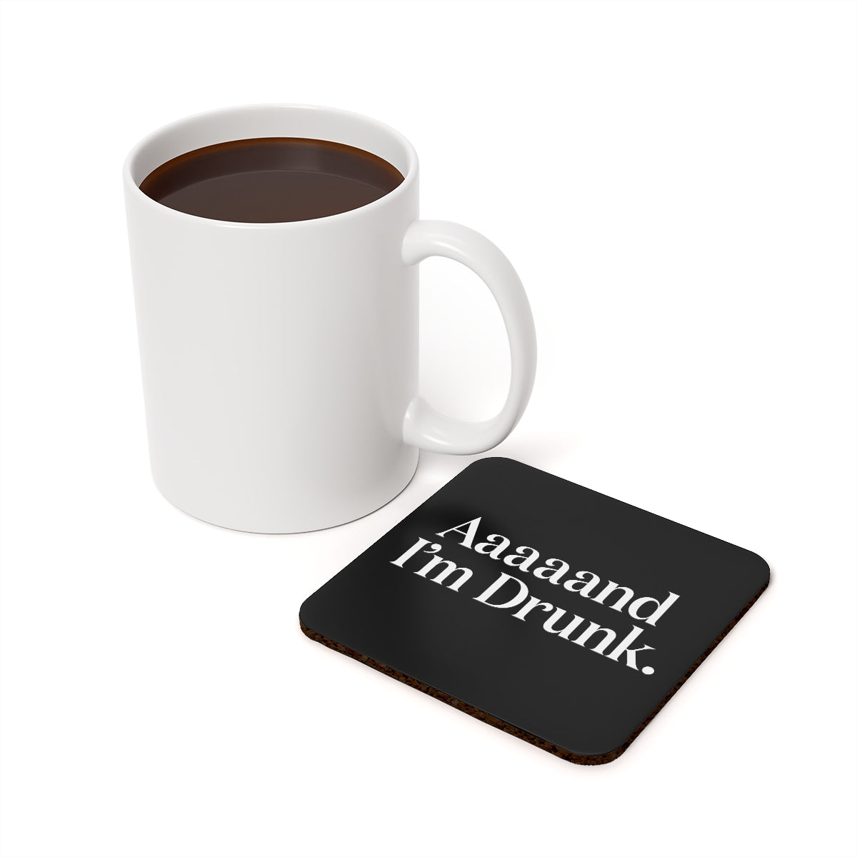 Aaaaand I'm Drunk - Black Cork Back Coaster