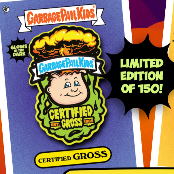 Garbage Pail Kids - Limited Edition CERTIFIED GROSS Glow in the Dark Enamel Pins and Exclusive Promo Trading Card
