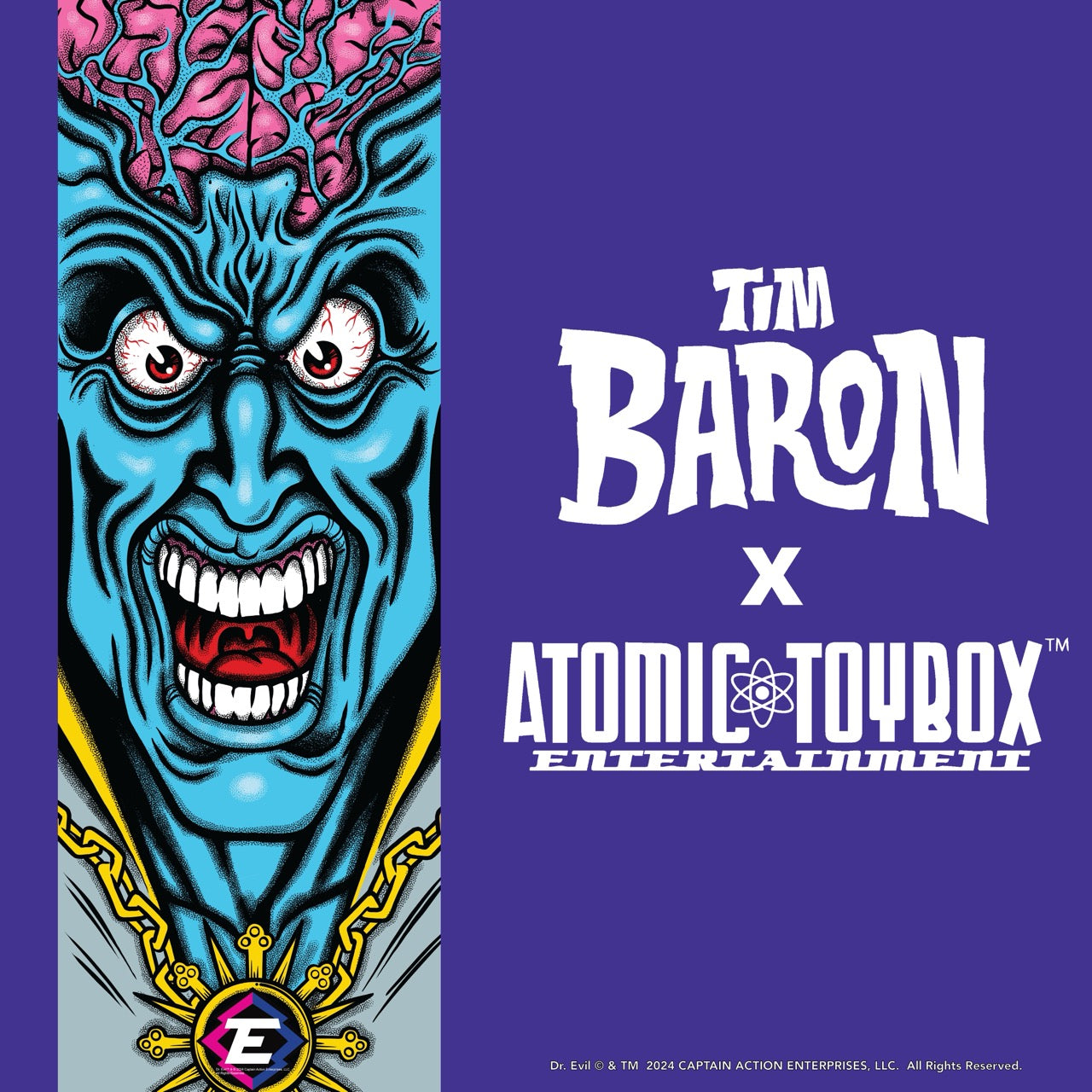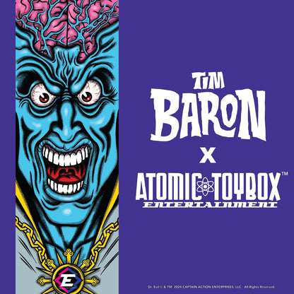 Introducing the exquisitely illustrated, autographed Dr. Evil Poster! Designed by the renowned artist Tim Baron, known for his work with Tony Hawk, this poster is a true collector's item. The poster measures 12 x 36 inches and showcases Baron's signature style, bringing these iconic characters to life in vibrant detail.