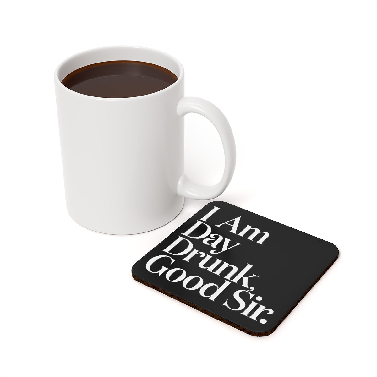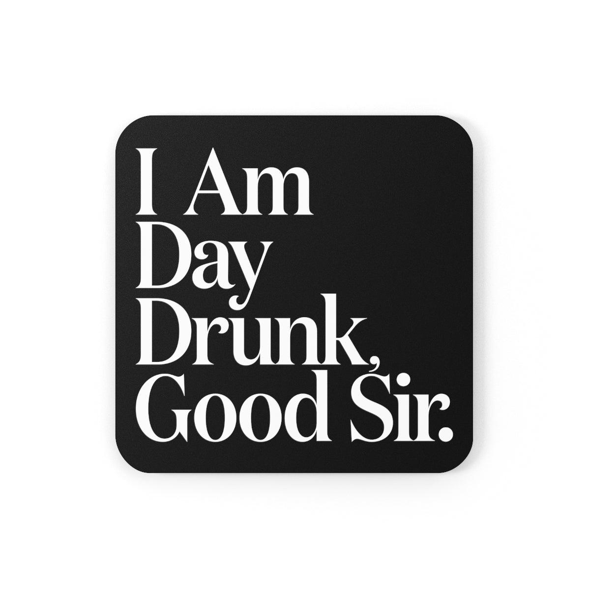 I Am Day Drunk Good Sir - Black Cork Back Coaster