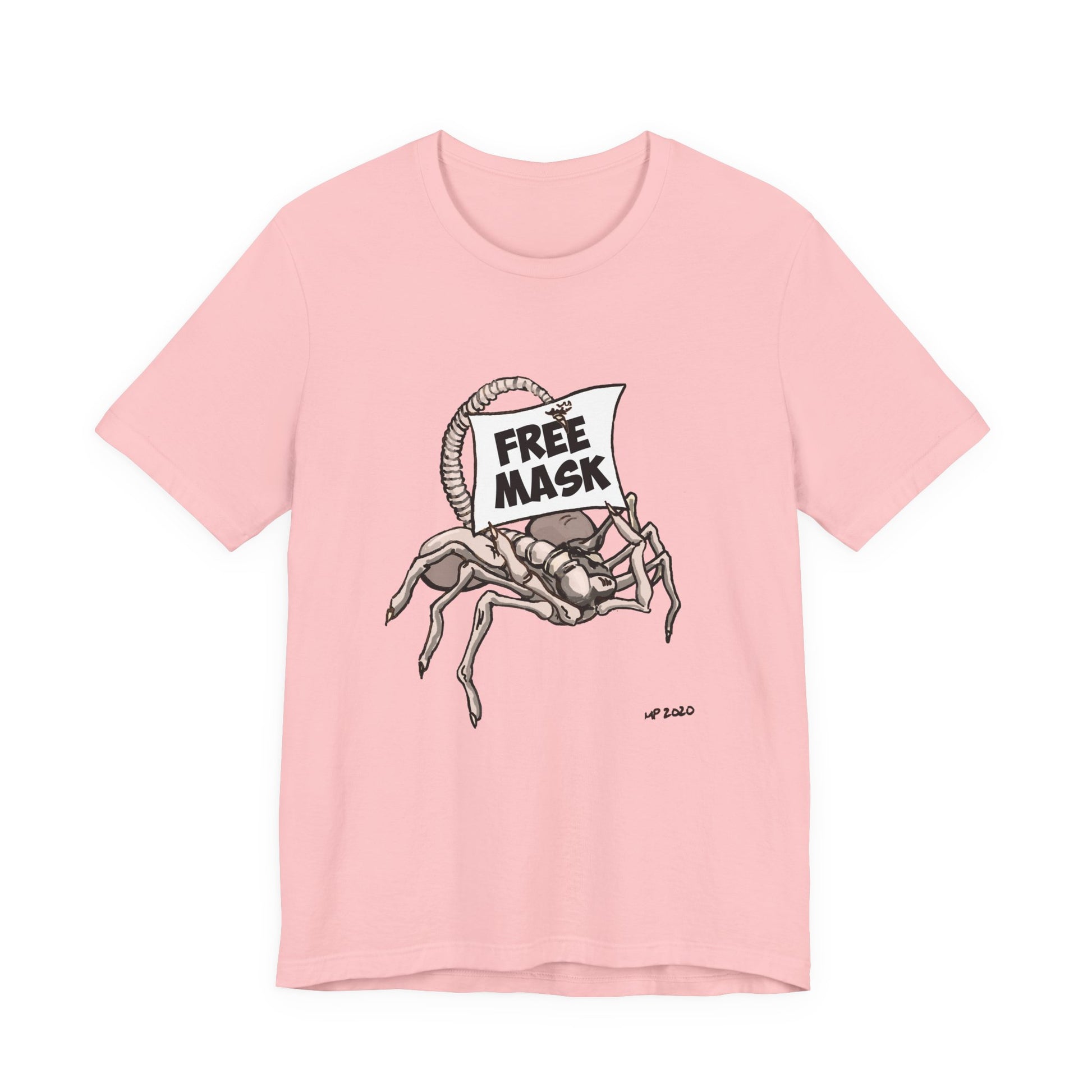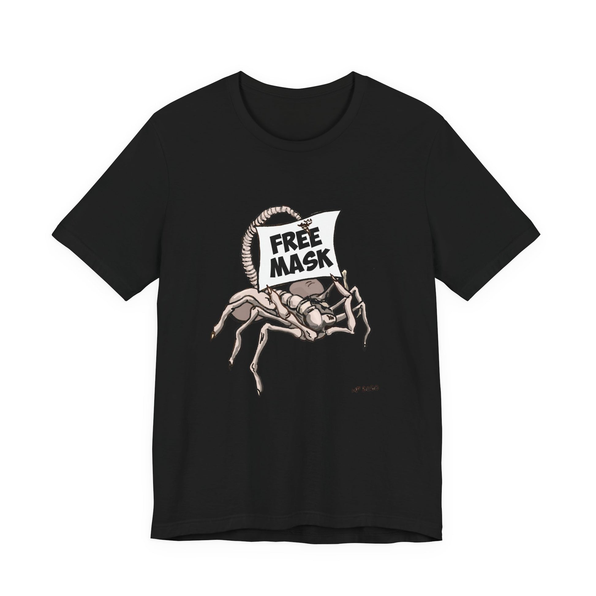 The Free Masks T-Shirt is a humorous and quirky tee inspired by the Face Hugger from Alien, offering 'free masks' to humans. It's perfect for those who love sci-fi and enjoy a playful twist on current events. This shirt is ideal for casual wear and can be a great conversation starter during Halloween or themed parties.